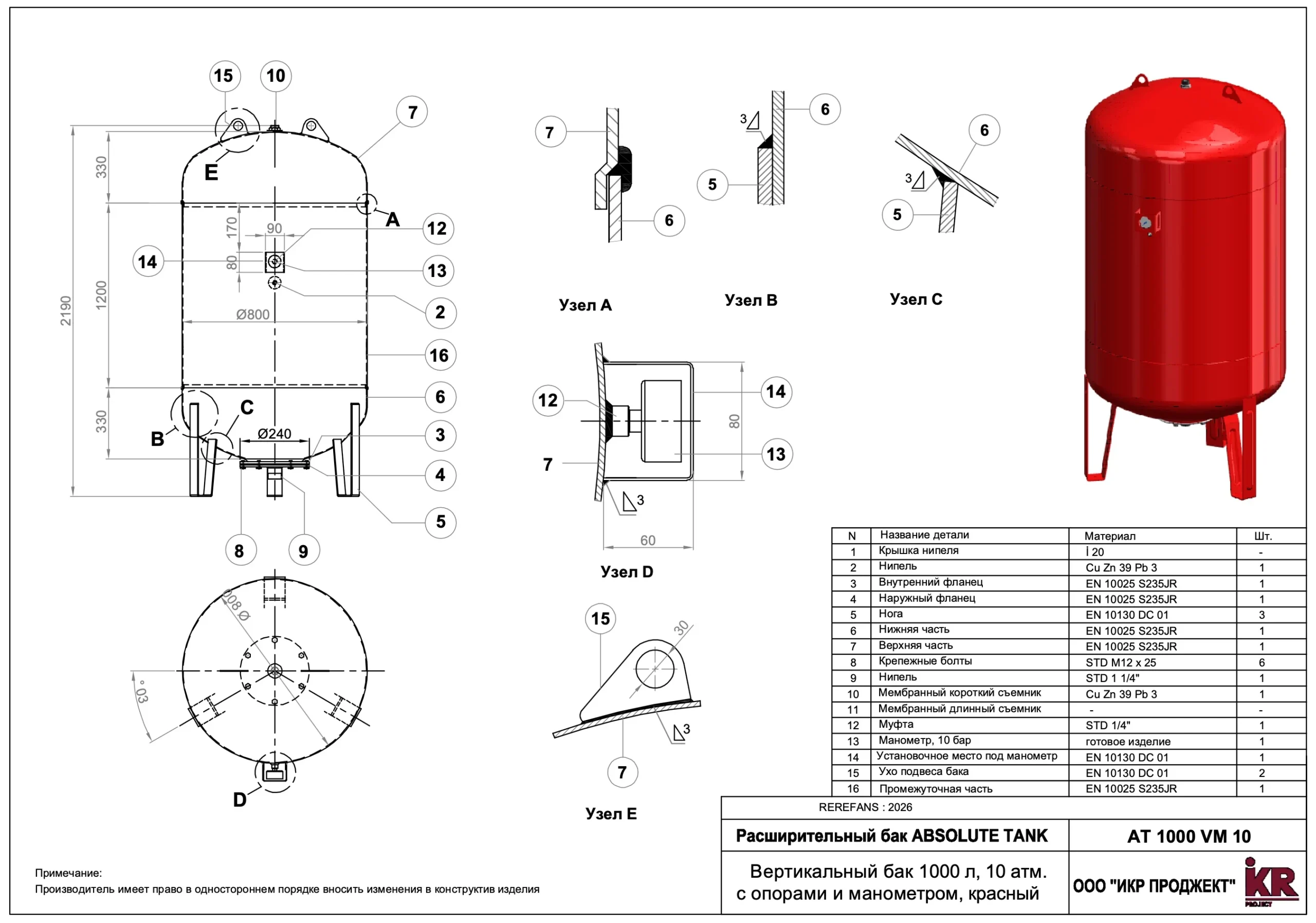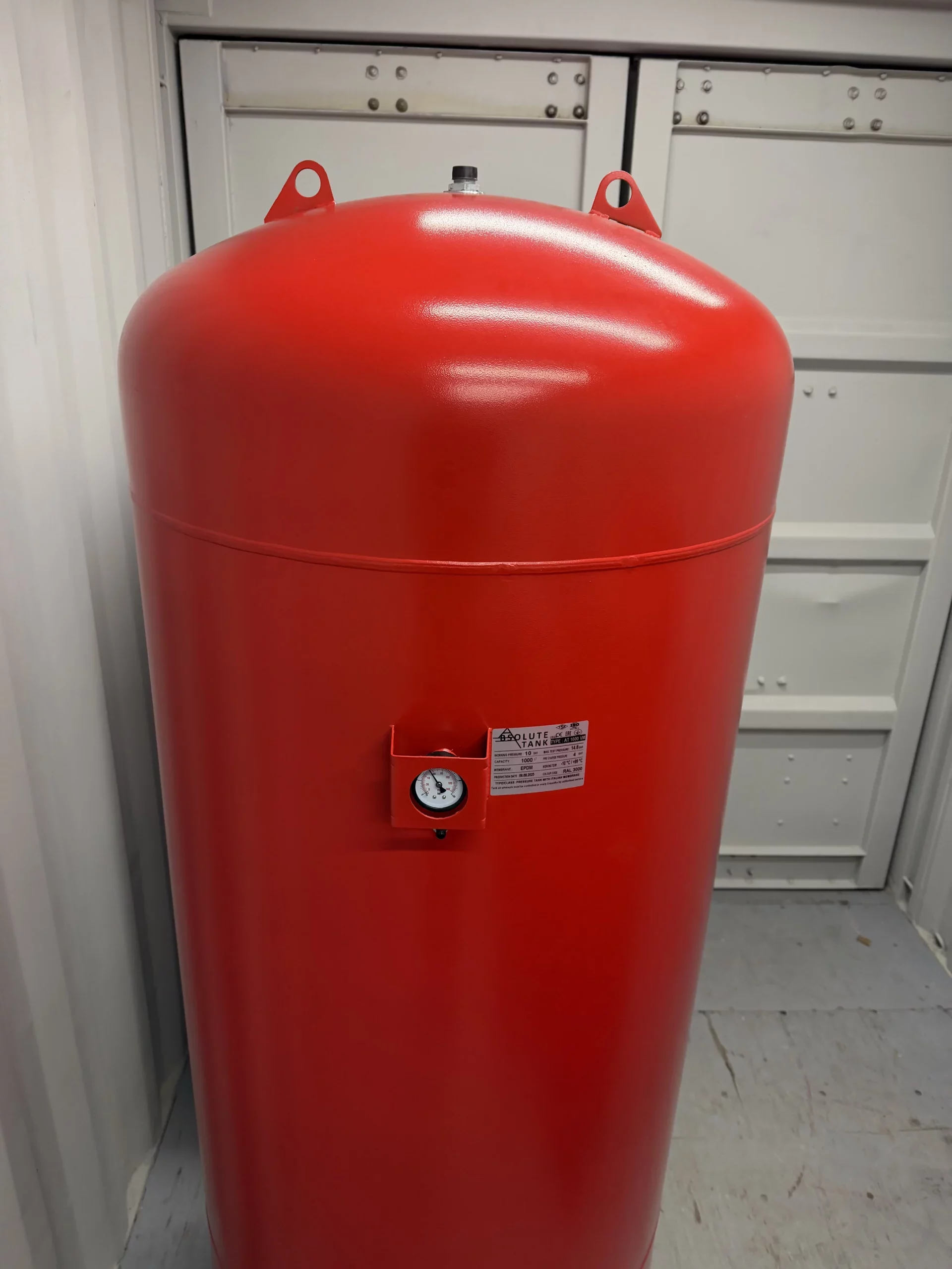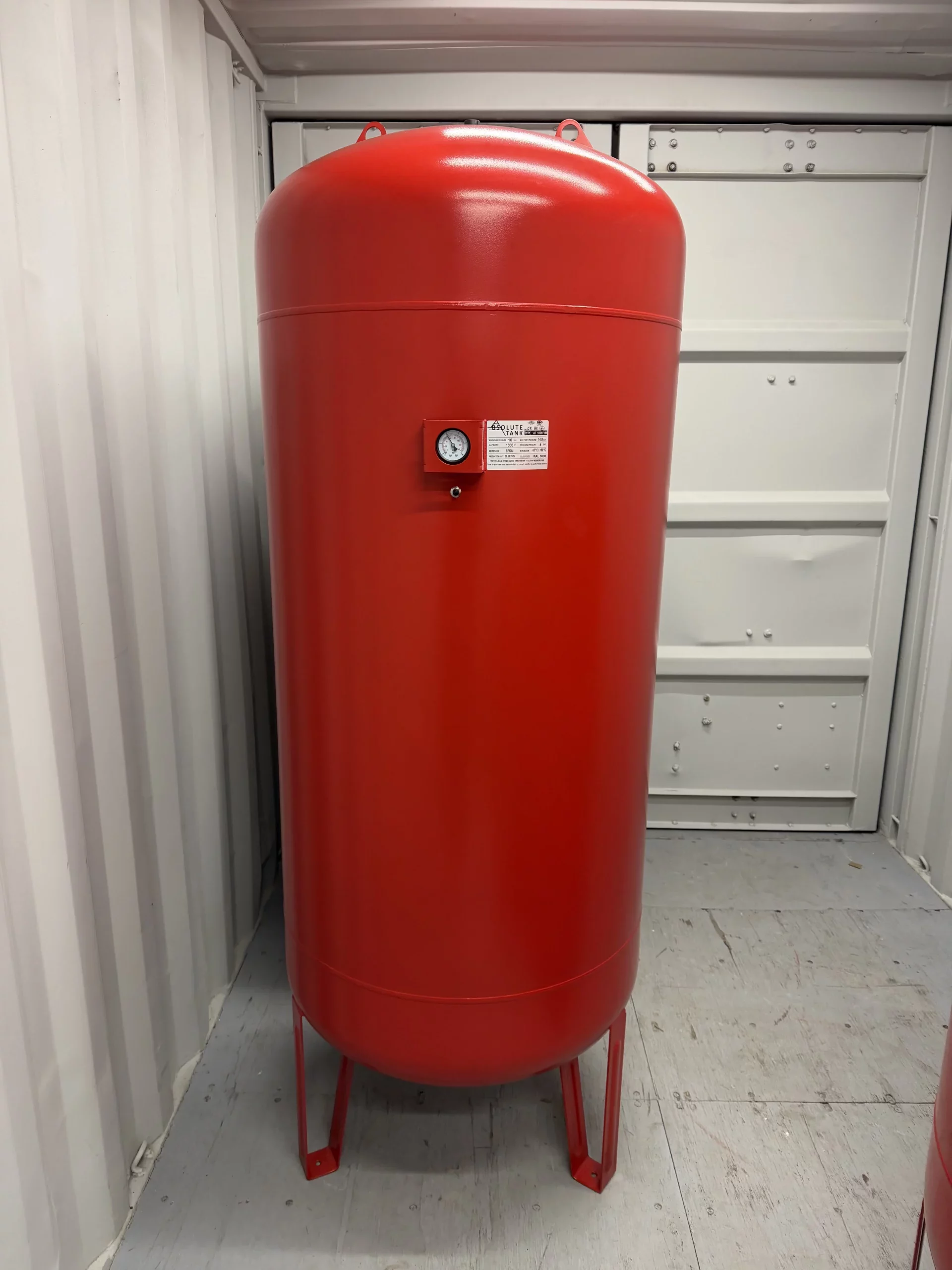 Материал: Корпус бака, опоры — углеродистая сталь, покрытая порошковой краской красного цвета, RAL 3000