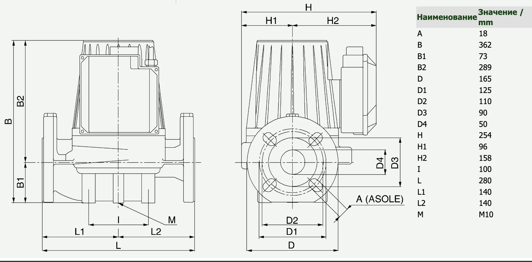 | Межфланцевое расстояние | 280 мм. |